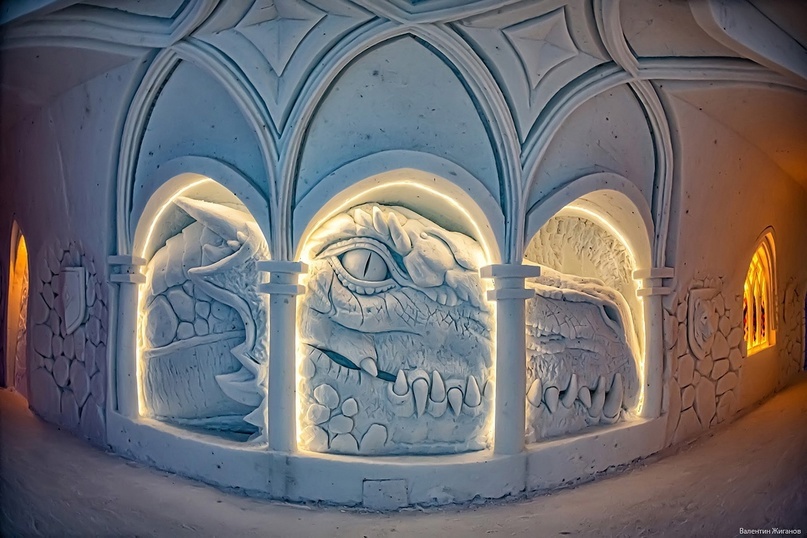 Все снежные залы оформлены в единой тематике. Тема «Снежной Деревни» всегда уникальна и никогда не повторяется! Каждый год - это уже новое сооружение со своими залами, коридорами, замысловатыми узорами, ледовыми экспозициями и, конечно же, неповторимым духом.